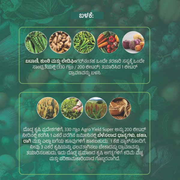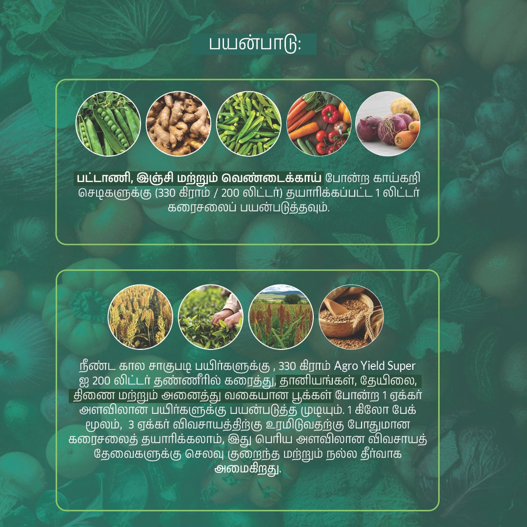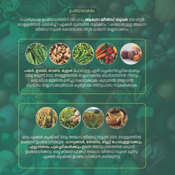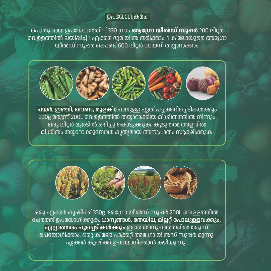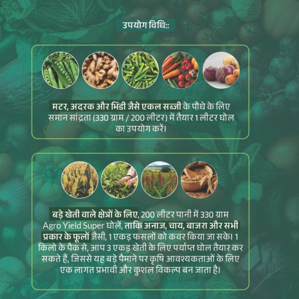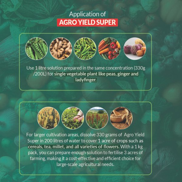 result, dissolve 330 grams in 200 litres of water. Agro Yield Super available in 1 kg packs which can