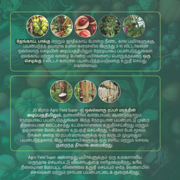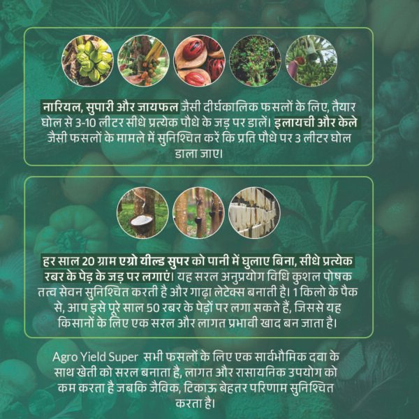 Agro Yield Super is appropriate for all types of agricultural crops, including perennial crops (like